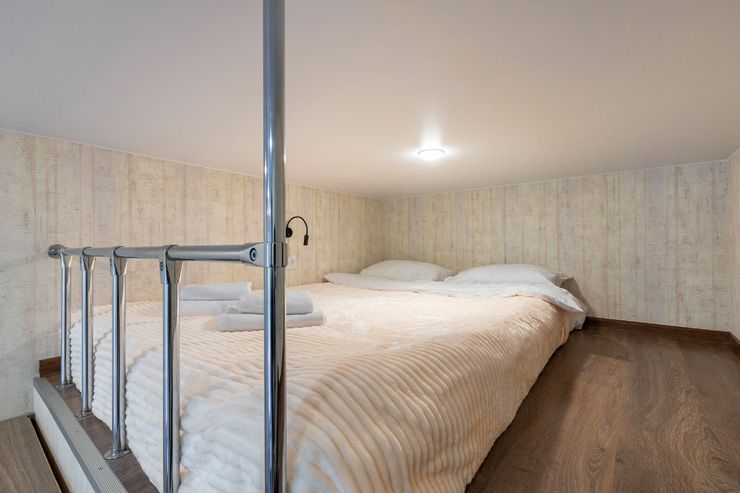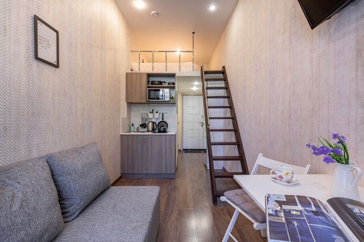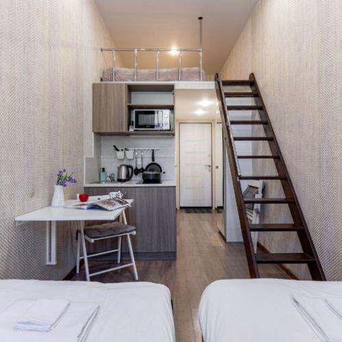 Гости могут остановиться в одной из студий с дизайнерским ремонтом, каждая вмещает до 4 гостей. В апартаментах есть все для комфортного отдыха –– оборудованная кухня, собственная ванная комната, телевизор с функцией Smart TV, стиральная машина и Wi-Fi.